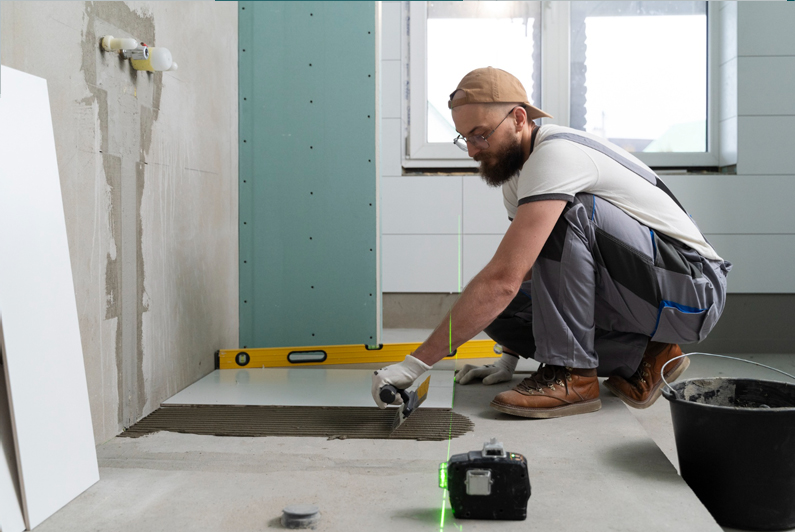 We provide expert floor tile laying in vitrified, ceramic, and granite, along with wall tile installation, bathroom and kitchen tiling, outdoor, parking and pathway tiles, and elegant elevation and decorative tile works.